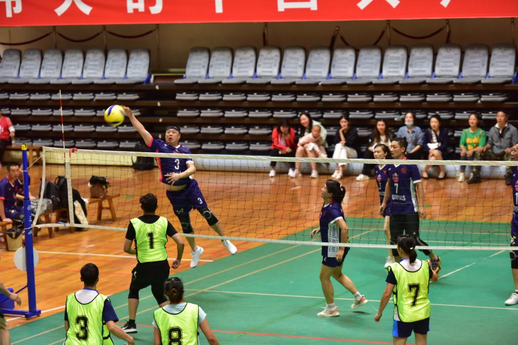 比賽中,每一名隊(duì)員都全力以赴,每一場(chǎng)比賽都精彩不斷,賽場(chǎng)上高潮迭起、扣人心弦。隊(duì)員們各施絕技,發(fā)球、起跳、攔網(wǎng)、吊球、扣球,每一個(gè)回合隊(duì)員們都精彩地傳球,每個(gè)環(huán)節(jié)都盡力發(fā)揮,贏來觀眾陣陣歡呼。對(duì)陣雙方斗智斗勇,進(jìn)攻激烈,防守出色,強(qiáng)攻、快攻成為得分必殺技,隊(duì)員們?cè)鷮?shí)的功底、默契的配合和良好的心理素質(zhì)在比賽場(chǎng)上充分展現(xiàn)。中場(chǎng)休息環(huán)節(jié)隊(duì)員們互相打氣加油,總結(jié)經(jīng)驗(yàn),認(rèn)真準(zhǔn)備下一場(chǎng)比賽。場(chǎng)地上觀眾吶喊助威聲此起彼伏,隊(duì)員們精湛的球技、絕妙的配合、頑強(qiáng)的意志贏得陣陣掌聲。小小的氣排球在球網(wǎng)上空飛來飛去,隊(duì)員們?cè)诟?jìng)爭(zhēng)中分享快樂,收獲健康和友誼。