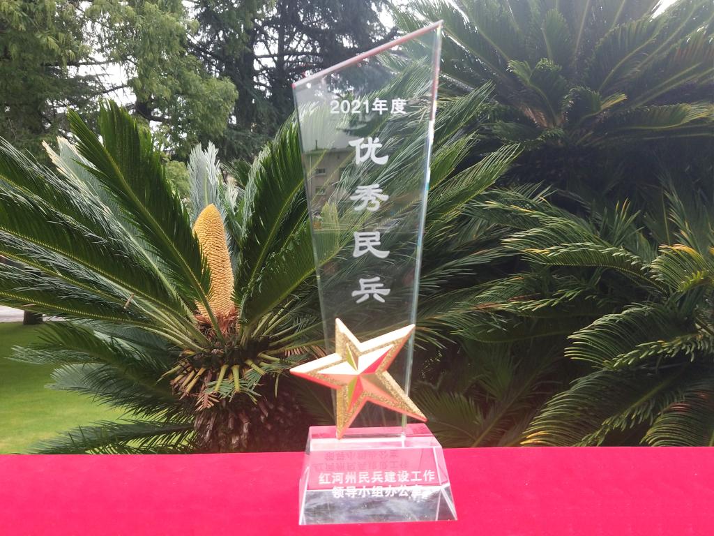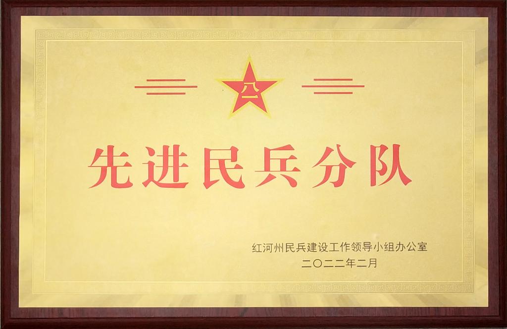 6月28日上午,紅河州2022年度州級基干民兵集結點驗大會在蒙自軍分區舉行,表彰獎勵全州在疫情防控、防災減災等各條戰線作出貢獻的先進集體和先進個人。控股公司被評為“民兵工作先進單位”。云錫民兵連被評為“先進民兵分隊”,云錫民兵連連長白建東、班長陸有清、女民兵莫建華榮獲“優秀民兵”稱號。