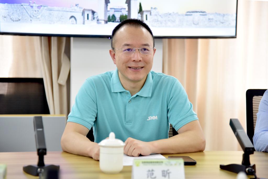 7月11日,上海有色網CEO范昕一行到訪錫業股份,就企業決策中對于價格及數據的運用與錫業股份董事長、總經理、黨委副書記劉路坷進行交流,錫業股份黨委委員、副總經理吳建勛,財務總監岳敏參加座談交流。