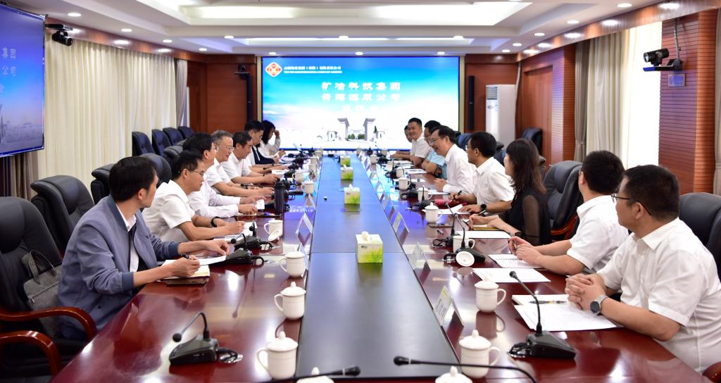 8月8日上午,礦冶科技集團黨委書記、董事長韓龍,黨委委員、副總經理馬彥卿一行到訪云錫,就雙方如何實現合作共贏、共同成長,與控股公司黨委書記、董事長胡均,黨委副書記、副董事長、總經理程睿涵,黨委常委、副總經理宋興誠座談交流。