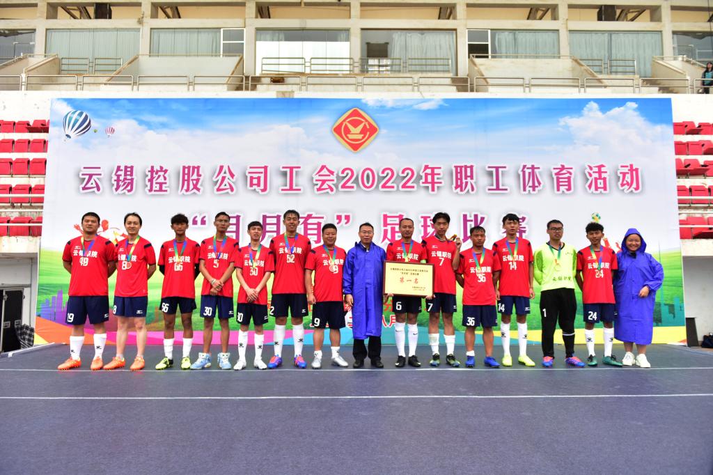 8月26日,由云錫控股公司工會主辦、銅業分公司工會承辦的2022年職工體育活動“月月有”足球決賽閉幕式在個舊市體育場舉辦。控股公司黨委副書記、工會主席姚家立出席決賽,并為獲獎的運動員頒獎。