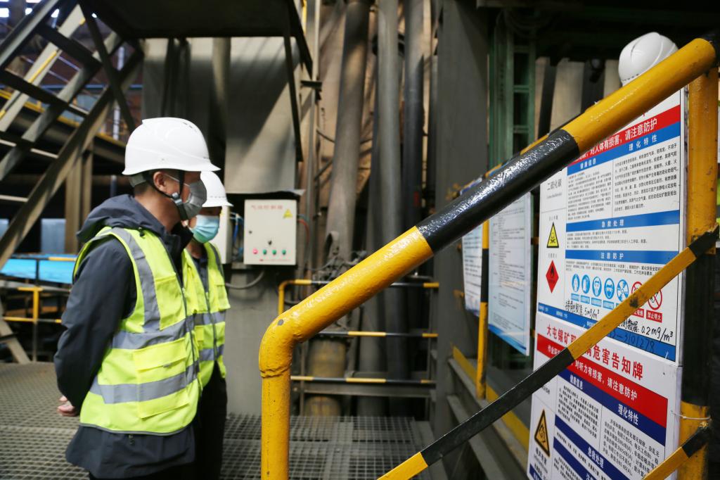 會前,調研組一行觀看了大屯錫礦宣傳片和安全教育警示片,穿戴好勞動防護用品后深入4000噸/日磨浮工段和硫重選工段,詳細了解選礦工藝流程、生產規模、安全環保、職業病危害防護設備設施設置、崗位職業病危害告知、職工勞保物品佩戴等企業主體責任落實情況。