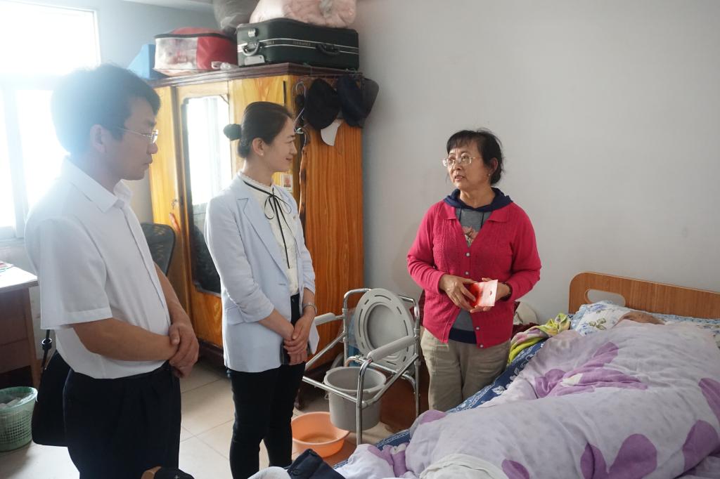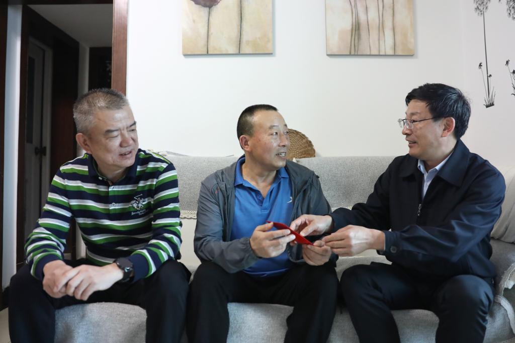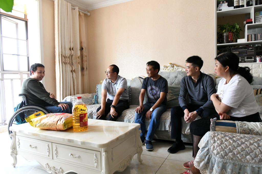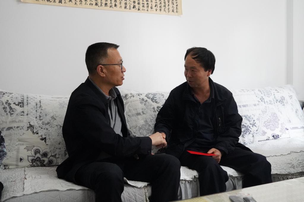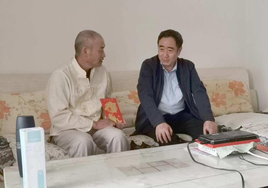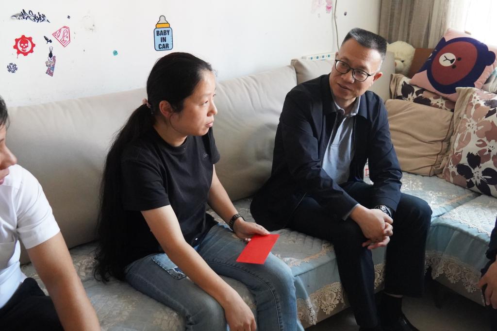 控股公司黨委副書記、副董事長、總經(jīng)理程睿涵走訪慰問建設(shè)集團(tuán)(地產(chǎn) 龍馬)公司困難職工王紹林(姚玉玲/攝)