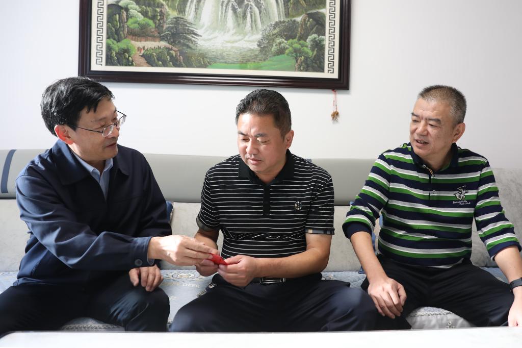 控股公司黨委常委、副總經(jīng)理宋興誠走訪慰問錫業(yè)分公司困難黨員李敬興(彭鑫/攝)