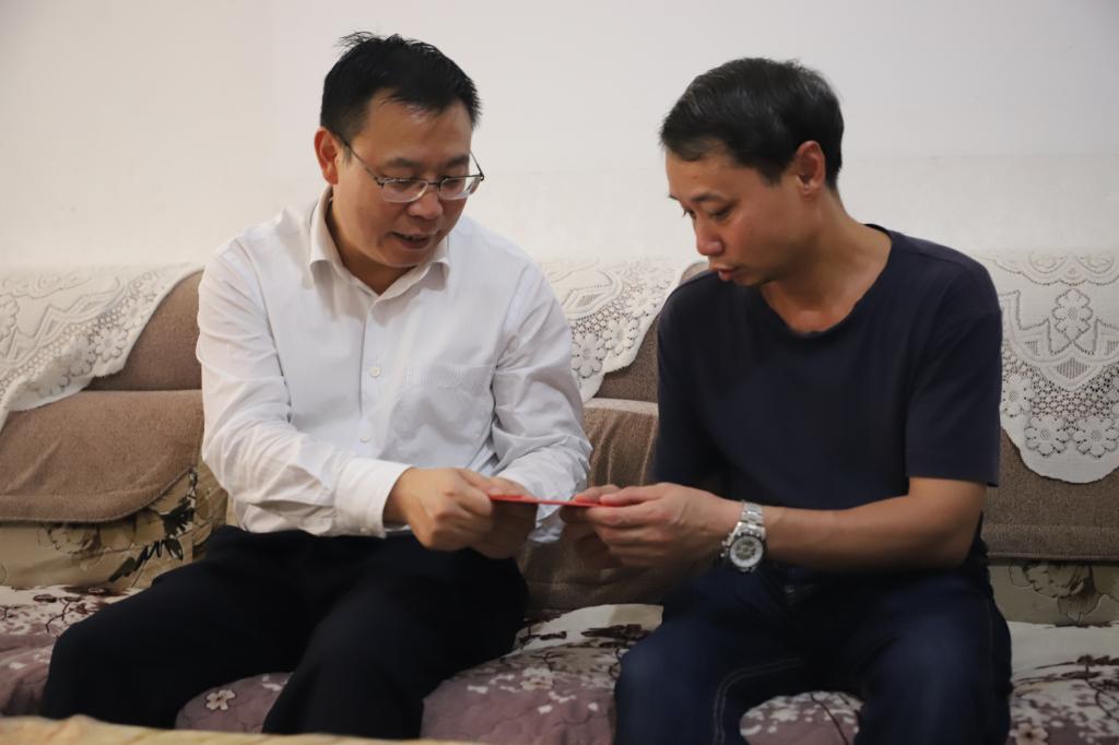 控股公司黨委常委、組織人事部部長吳君走訪慰問物流公司困難職工李和明(楊雪峰/攝)