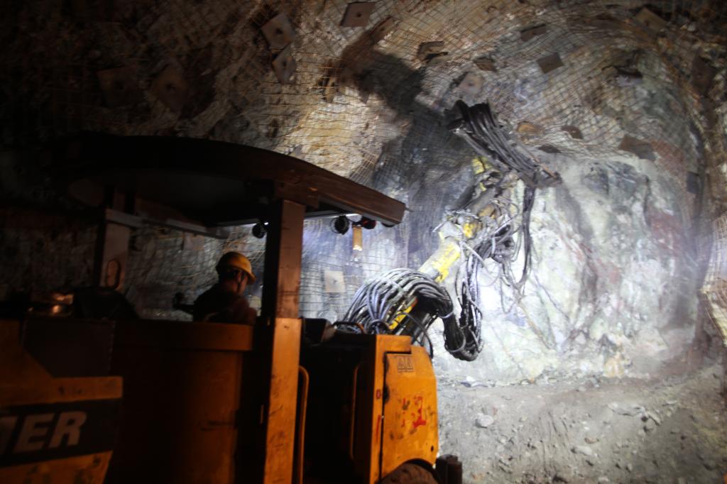 這十年,高效的鑿巖臺車、運(yùn)礦卡車、鏟運(yùn)機(jī)等先進(jìn)裝備勢如破竹般浩浩蕩蕩駛進(jìn)礦井深處,先后開辟了高峰山、大箐、大馬蘆三大生產(chǎn)基地。在開拓工程掘進(jìn)過程中,巷道斷面的增大以及爆破布眼方式的變革是制約掘進(jìn)效率的主要原因,技術(shù)員們通過與掘進(jìn)工的不斷探討,通過“導(dǎo)硐法”掘進(jìn)到二級“楔形”掏槽掘進(jìn)的不斷試驗(yàn)總結(jié),最終形成了“75mm大孔徑擴(kuò)孔掏槽”的掘進(jìn)方式,形成了大屯錫礦4.5m×4.2m巷道規(guī)格的全斷面爆破掘進(jìn)工藝。2013年,通過開展巷道開挖后原巖應(yīng)力重新分布的機(jī)理研究,確定了巷道錨網(wǎng)支護(hù)參數(shù)。隨著“濕噴支護(hù)”技術(shù)和裝備的引進(jìn),支護(hù)方式由傳統(tǒng)的“剛性支護(hù)”轉(zhuǎn)為“柔性支護(hù)”。加上混凝土運(yùn)輸車的能效加持,無軌井下支護(hù)作業(yè)實(shí)現(xiàn)了強(qiáng)度更高的混凝土澆筑作業(yè),大屯錫礦支護(hù)作業(yè)的安全性和支護(hù)效率得到大幅提高,勞動強(qiáng)度大幅降低。