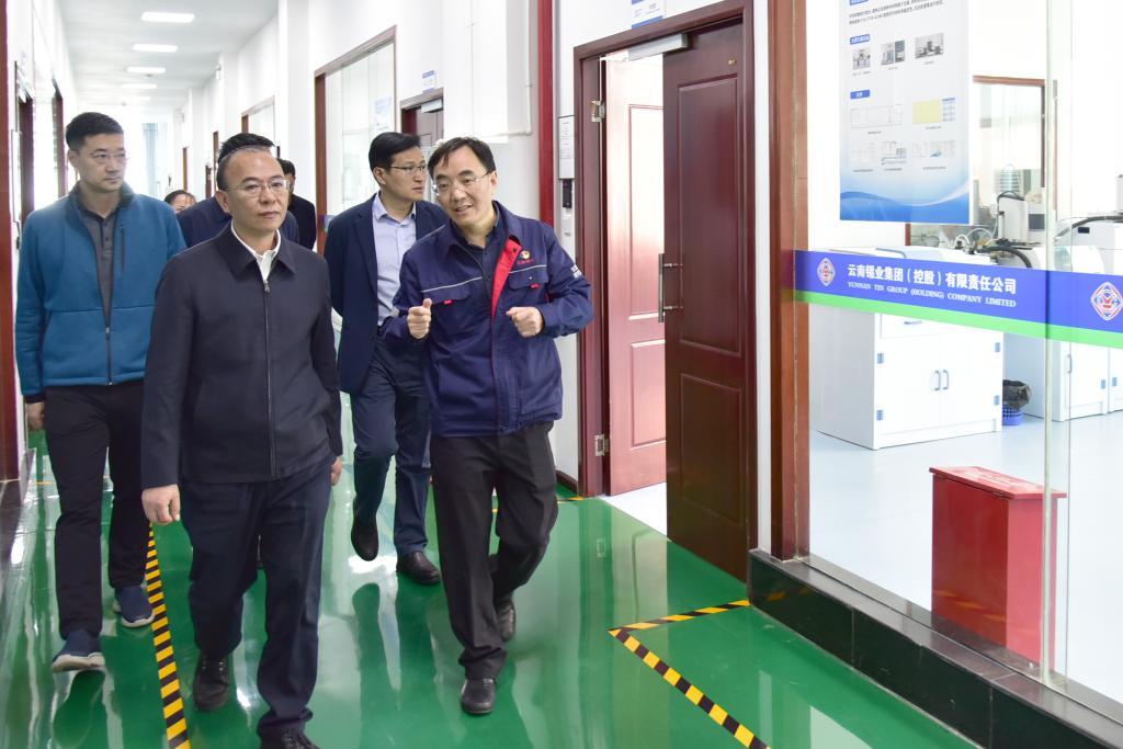 11月1日,控股公司黨委書記、董事長孫勇率隊調(diào)研云錫研發(fā)中心。控股公司黨委常委、副總經(jīng)理韓守禮參加調(diào)研。