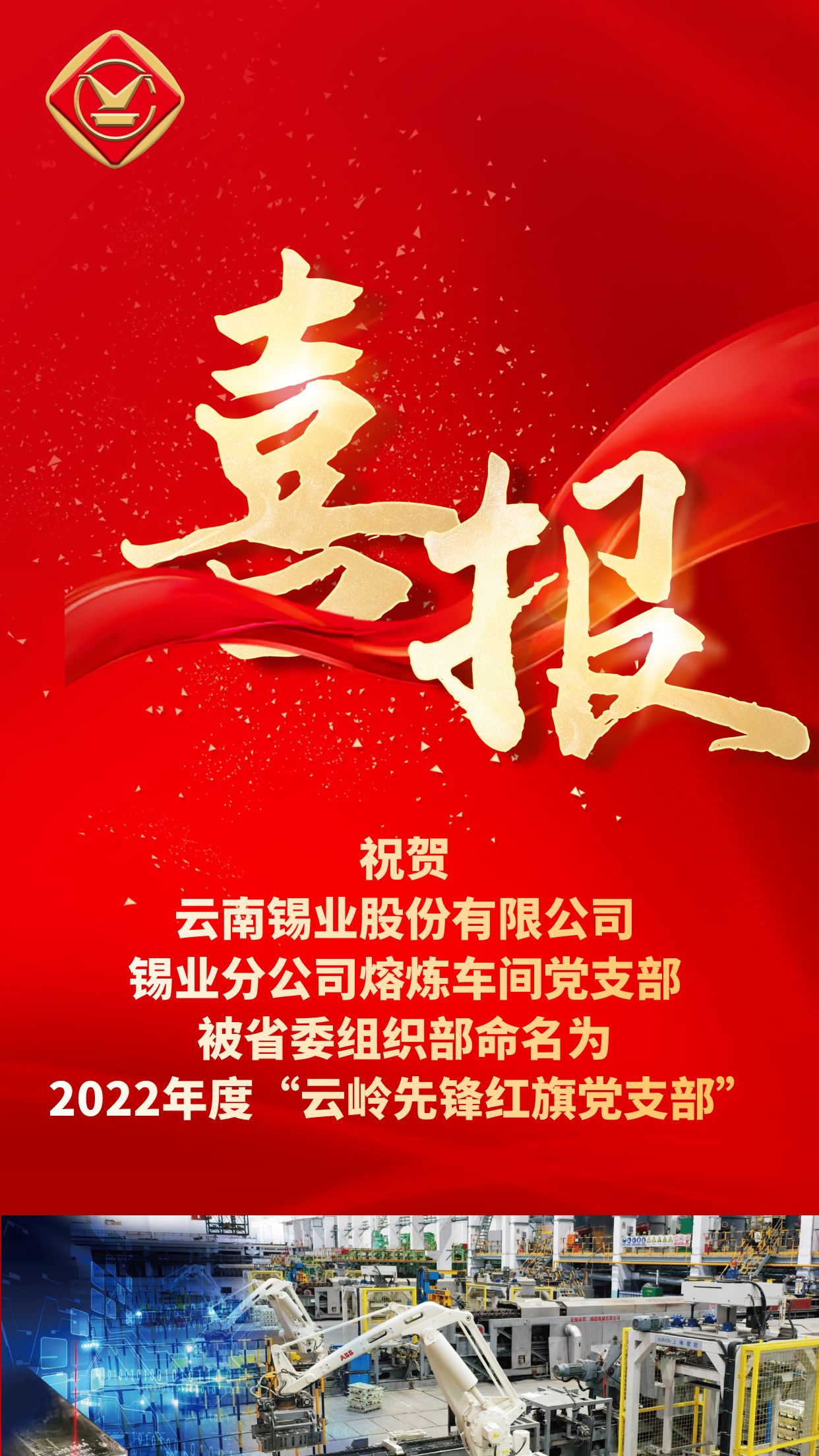 錫業分公司熔煉車間黨支部獲評2022年度“云嶺先鋒紅旗黨支部”