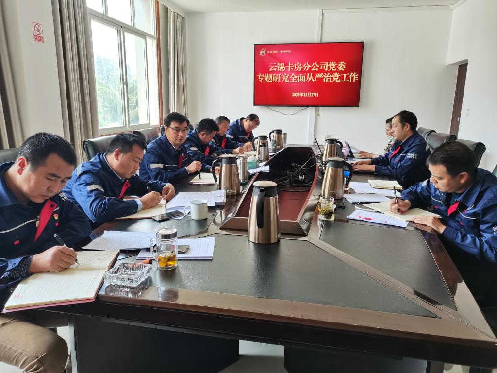 2022年以來,卡房分公司黨委按照新時代黨的建設總要求,以習近平新時代中國特色社會主義思想為指引,在兩級公司黨委的堅強領導下,團結帶領全體黨員干部員工,緊扣當期生產經營中心工作和“打造銅錫鎢多金屬生產基地”的戰略目標,深入推進黨建品牌創建、清廉國企建設、“黨建+”、黨建工作與業務中心工作相融互促等,為推動卡房分公司高質量發展打下堅實基礎。