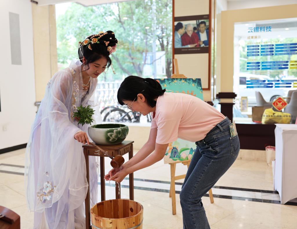 取一勺蘭湯凈手,以取驅(qū)除晦氣,平安健康之意,大家浸潤于傳統(tǒng)習(xí)俗的美好寓意中,在儀式感的流程中感受端午特有的氣氛。
