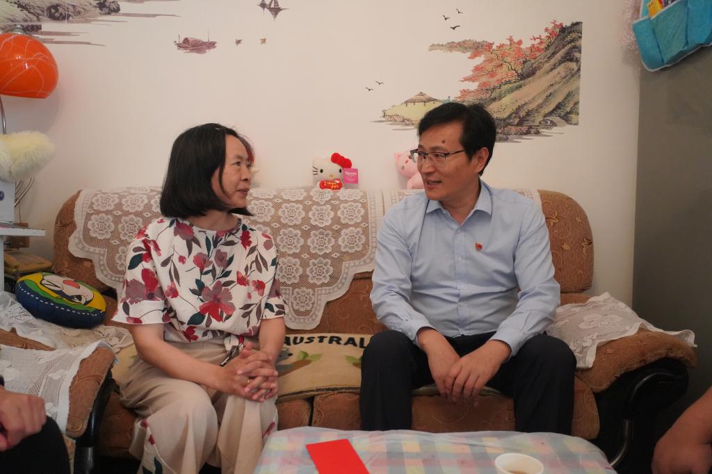 控股公司黨委常委、組織人力部部長吳君走訪慰問銅業(yè)分公司困難黨員張南輝(朱晗/攝)