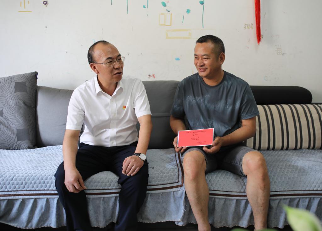 控股公司黨委書記、董事長孫勇走訪慰問華聯(lián)鋅銦公司困難黨員徐天尤(張引娣/攝)