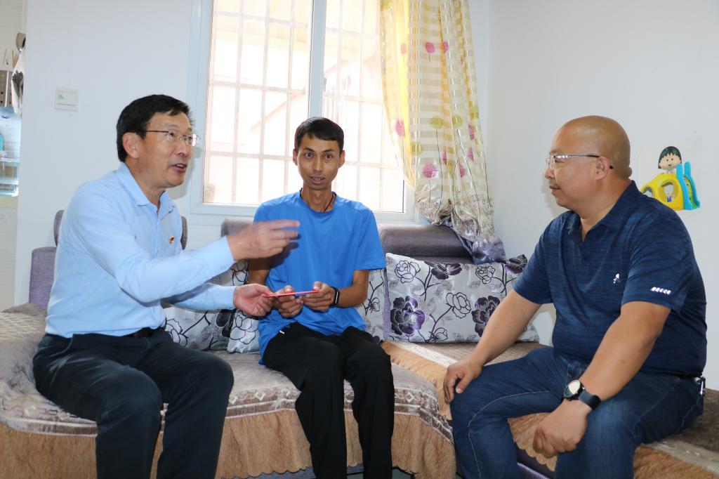 控股公司紀(jì)委書記、省監(jiān)委駐云錫監(jiān)察專員劉俊走訪慰問物流公司困難黨員陳沿宇(肖涵月/攝)