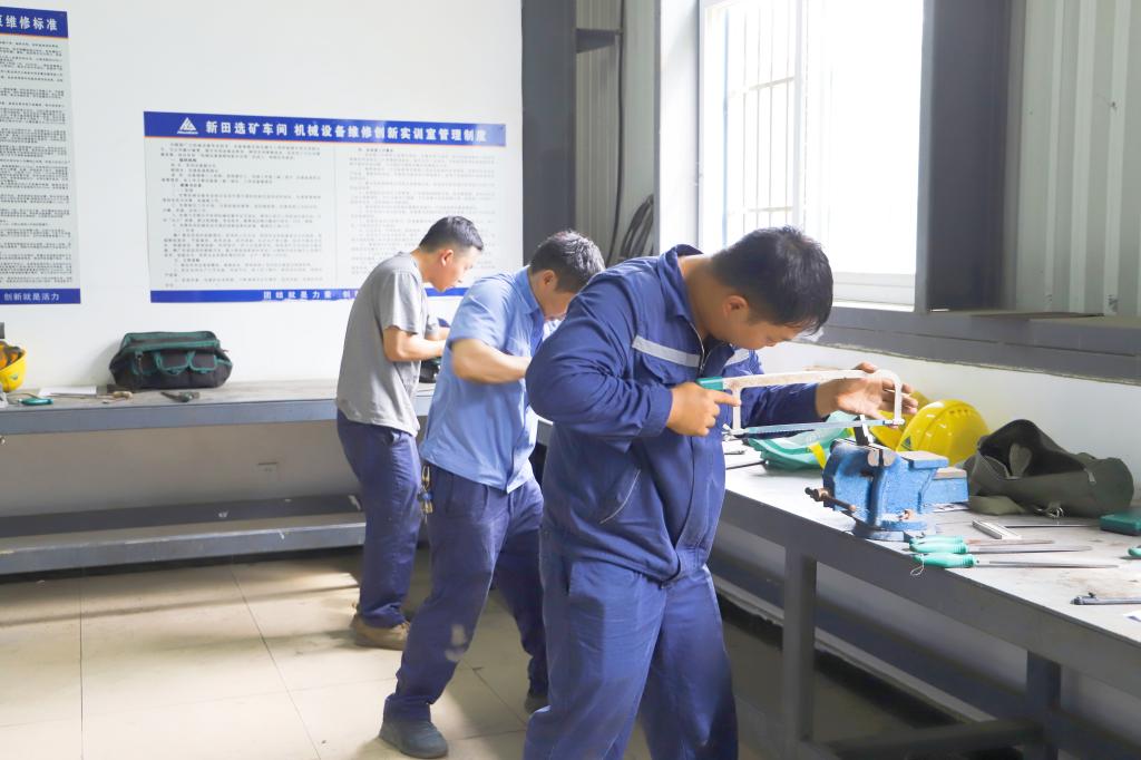 在精細“練”才上做好文章,讓人才有干頭。為提高人才培養工作的質量和效果,全面提高人才自主培養質量,著力造就拔尖創新人才,聚天下英才而用之。加強和專業性廠家技術交流合作,為人才培養提供更廣闊的平臺和資源,實現“走出去,引進來”戰略,充分利用好廠外先進知識、技術,在車間實際生產運作中進行相互匹配、相互促進。注重培養員工的創新思維和實際操作能力,鼓勵職工參與解決實際工作中的難題和挑戰,培養其創新精神和解決問題能力。車間黨支部以打造“國際一流智能選礦廠“為目標,堅持科技創新服務車間高質量發展,成立以黨員為主要參與者的工藝指標技術攻關小組、質量QC小組、工藝改造領導小組,緊緊圍繞制約車間均衡穩定生產運行的難點堵點問題,實施科技創新攻關項目,牽住科技創新“牛鼻子”、走好科技創新“先手棋”、按下科技創新“加速鍵”,持續提升車間科研攻關能力。其中車間職工王永劍、陳再福等獲云南省“技術明星”、“技術能手”稱號。通過提高科研技術攻關能力,不斷攻克制約車間高質量發展的難點堵點問題,為車間高質量發展注入強勁動能。2023年以來,重選人工智能技術開發項目進入新階段,智能接礦機器人在優化計算及數據庫的完善后,運行更加穩定并已進入下一步研究階段;硫浮選智能控制系統技術研究項目即將進入核心技術研究階段;7張原礦床已安裝云南阿姆德電氣工程有限公司研發設計的新一代搖床智能接礦裝備,即將進行調試工作。加強對培養效果的評估和反饋機制,及時調整培養計劃,確保培養工作的針對性和有效性。車間不斷探索創新培訓方法和教學手段,以提升培訓的互動性和實效性,通過多樣化的培訓形式,如案例分析、團隊合作和模擬實訓,激發職工的學習興趣和動力,促進其在工作中運用所學知識和技能,實現個人和團隊的共同成長。