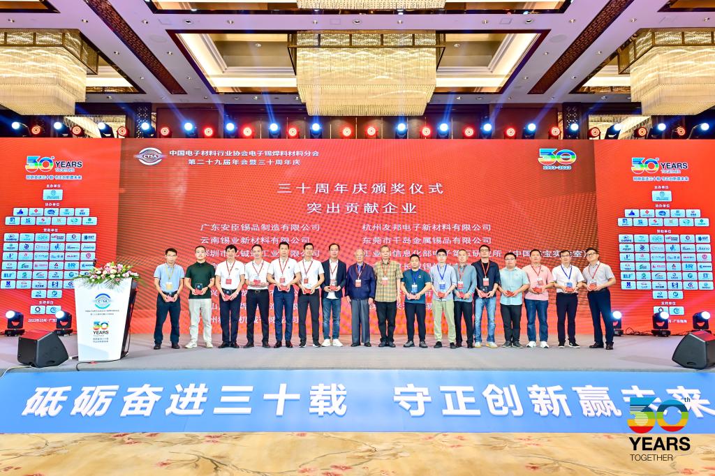 10月18日至20日,中國電子材料行業協會電子錫焊料材料分會第二十九屆年會暨三十周年慶在廣東珠海舉辦,表彰先進、研判形勢,推動我國電子錫焊料行業高質量發展。云錫新材料公司作為副理事長單位、協辦單位受邀參加。