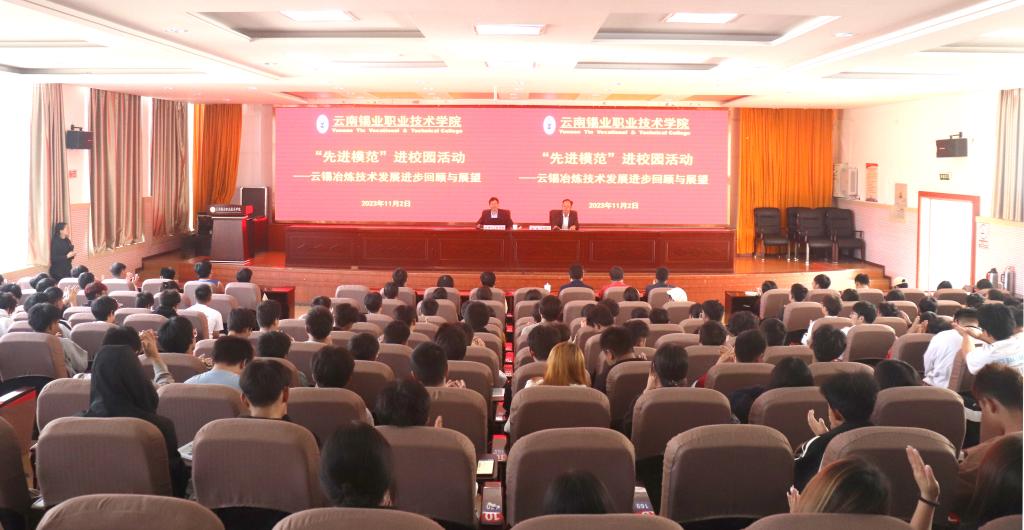 為全面學習宣傳貫徹黨的二十大精神,認真學習貫徹習近平總書記重要講話和中國工會十八大精神,大力弘揚勞模精神、勞動精神、工匠精神,引導青年學生樹立和踐行社會主義核心價值觀,唱響勞動光榮、技能寶貴、創造偉大的主旋律。近日,職業學院開展“先進模范”進校園活動,特邀云南省勞動模范、控股公司黨委常委、副總經理宋興誠以“云錫冶煉技術發展進步回顧與展望”為題,為250余名師生代表分享了云錫冶煉技術的發展和個人成長經歷。