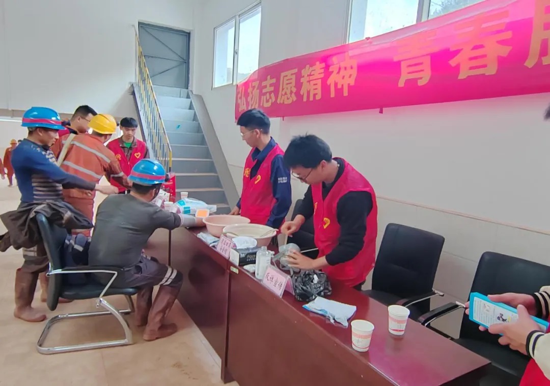 大屯錫礦開(kāi)展“弘揚(yáng)志愿精神 青春服務(wù)礦山”主題活動(dòng),在上下班的時(shí)間節(jié)點(diǎn)為工人師傅們進(jìn)行血壓測(cè)量、幫助他們清潔口罩、安全帽、提供暖心熱飲,發(fā)放反詐宣傳資料、宿舍衛(wèi)生清掃、清洗電瓶車(chē)等志愿服務(wù)。(楊瀟賢)