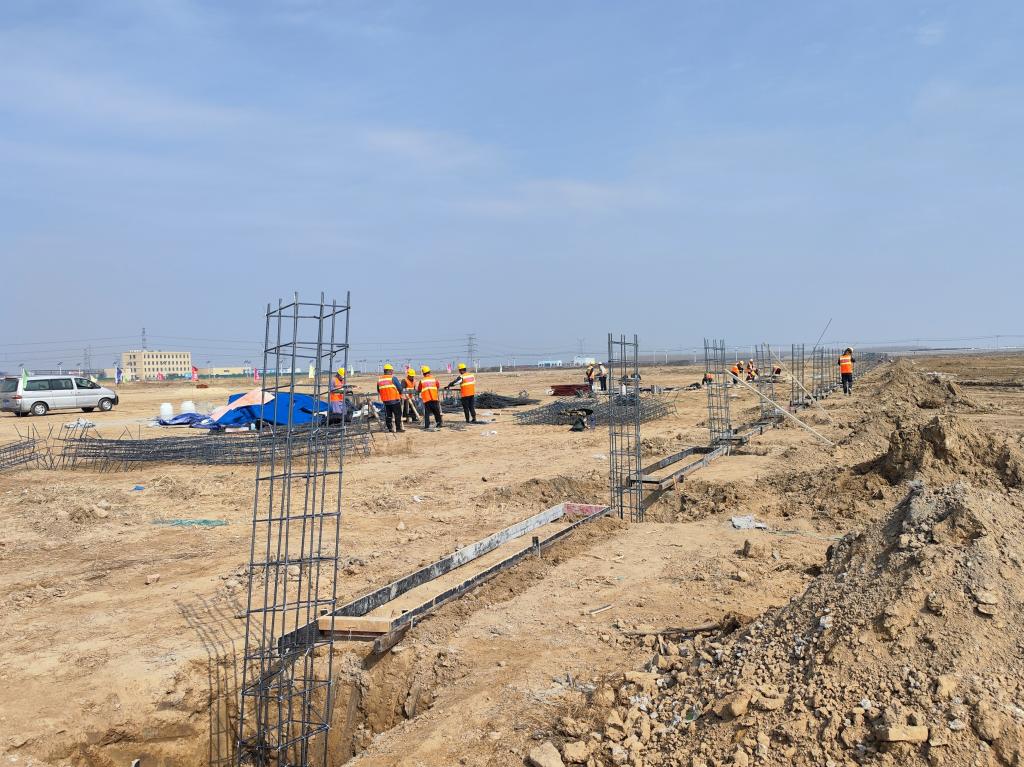 項目總承包單位云錫建設集團高度重視,以項目建設“高標準”為核心理念,以項目管理“嚴要求”為主線,以工程進度、安全、質量、文明施工為重點,在錫都實業公司主要領導的親自組織推動下,聚焦項目施工團隊組建、明確項目施工責任人、壓緊壓實設計、施工責任;先后深入考察了解當地建筑材料、勞務用工等市場行情,與26家材料供應商、勞務分包單位接洽摸底,為下一步材料采供、勞務分包打好基礎;與設計單位山東濱州設計院積極溝通對接,有序推進項目施工圖設計;有序組織開展項目建設前期“三通一平”工作。截至4月10日已完成項目用地平整9000平方米,廠區四周1400米圍墻土建施工及圍擋安裝,廠區正門(臨時)基礎開挖、澆灌、鋼結構組立,綜合樓區域雨水溝、化糞池基礎開挖,雨水井砌筑,以及區域平整壓實、澆灌地坪1500平方米和廠區用水引入等工程量。