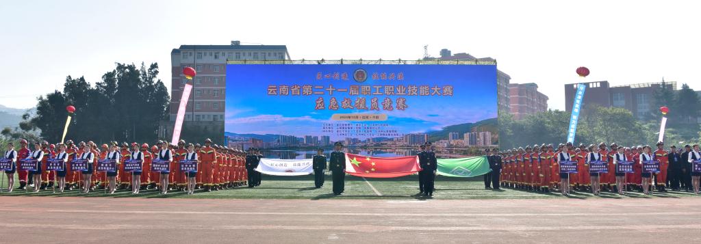 10月24日上午,伴隨著雄壯的國歌聲,云南省第二十一屆職工職業技能大賽應急救援員競賽在云錫職業技術學院舉行。