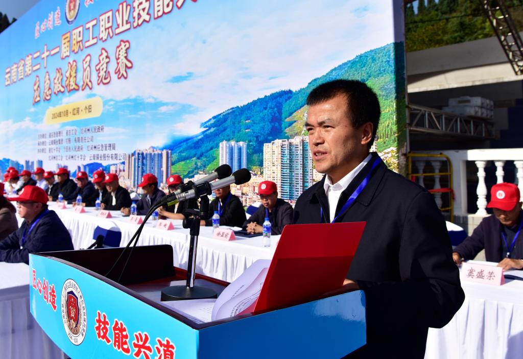 控股公司黨委副書記、副董事長、總經理韓守禮致辭,表示云錫將發揚認真負責、熱情周到的工作作風,全力做好服務保障,為競賽順利舉行創造良好環境。希望參賽隊員嚴格遵守比賽規則,努力展示技能和才華,以精湛的技術、高超的技能爭取優異成績,賽出風格、賽出水平。