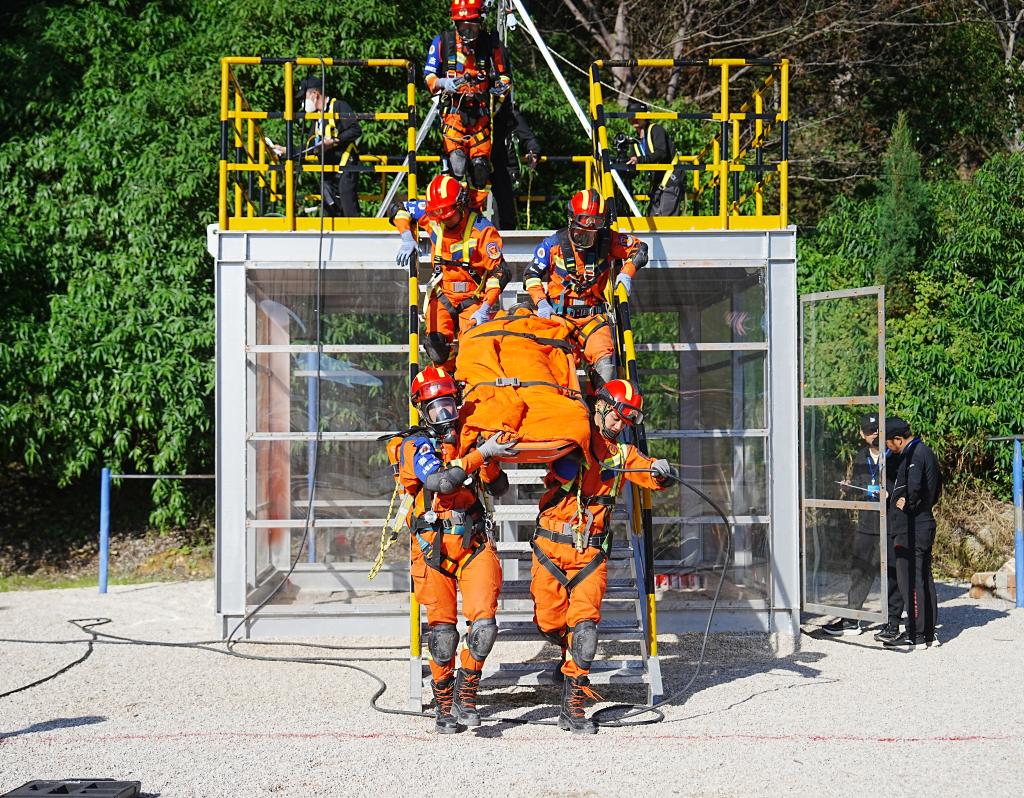 在地震災(zāi)害被困人員搜救處置項(xiàng)目中,選手仿佛置身于真實(shí)的地震現(xiàn)場(chǎng),配合默契,搬運(yùn)設(shè)備、設(shè)置支護(hù)、鑿巖穿孔、全力搜救……每一個(gè)環(huán)節(jié)都緊張有序,團(tuán)隊(duì)協(xié)作和應(yīng)急處置能力得到了充分體現(xiàn),他們用實(shí)際行動(dòng)詮釋了什么是責(zé)任與擔(dān)當(dāng)。