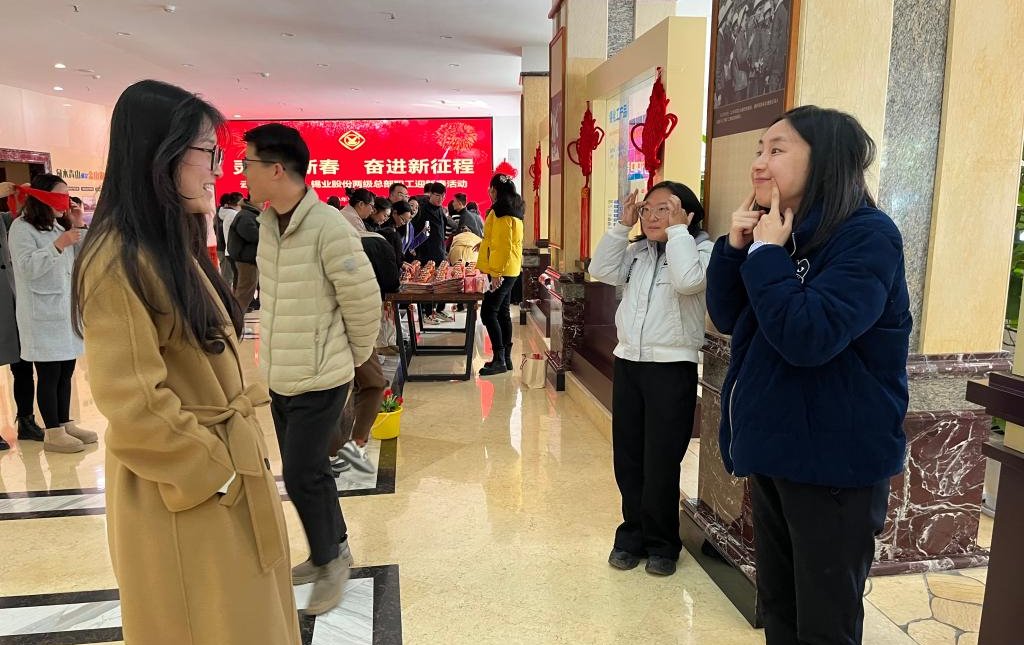 控股公司、錫業股份兩級總部工會開展迎新春趣味活動,“你比我猜” 妙趣橫生、“盲人插花”別出心裁、“傳遞幸福” 扣人心弦。參與游戲的職工們時而全神貫注、苦思冥想,時而擊掌歡呼、手舞足蹈,默契度在一來一往間升溫,歡笑聲在周圍空氣中回蕩,恰似靈動音符,奏響新春序曲。紅色的中國結,喜慶的春聯,處處洋溢著濃厚的節日氛圍。(沈欣橋)
