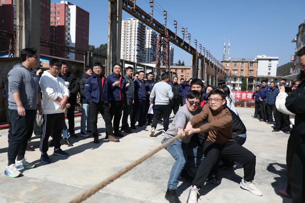 錫業分公司工會組織開展10人集體跳長繩、“神筆馬良”、“同舟共濟”等比賽,為新的一年注入滿滿正能量。(楊鑫媛)