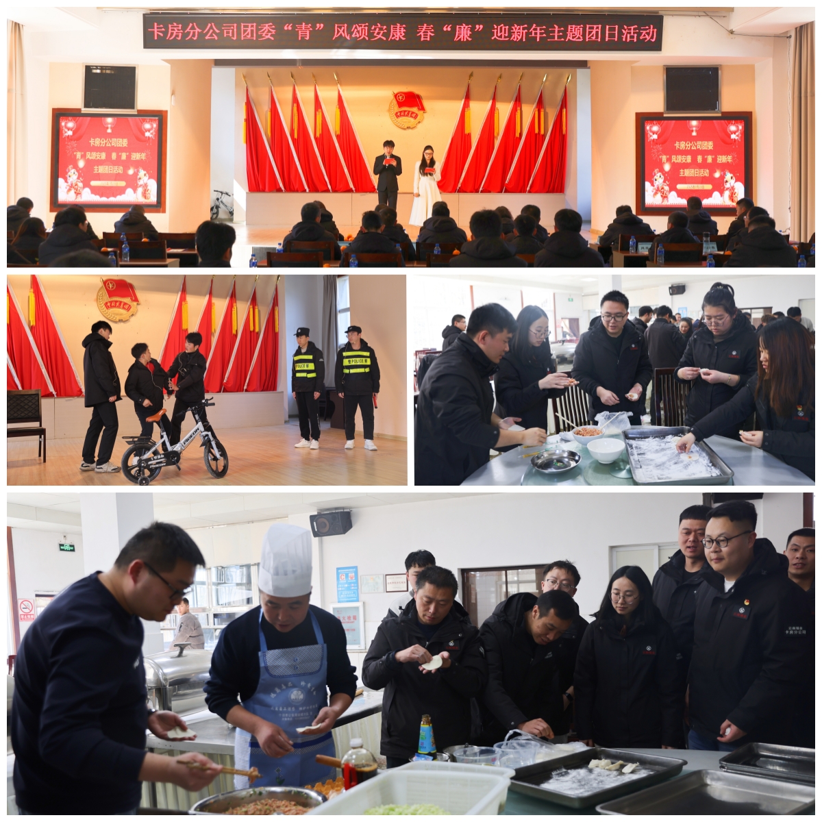 卡房分公司團委依托小品比賽形式,緊扣酒駕醉駕、安全環保、廉潔自律、護廠護礦等題材,精心編排弘揚正能量的節目,贏得現場觀眾陣陣掌聲。賽后,大家參加包餃子活動,現場充滿歡聲笑語,在溫馨氛圍中感受新年氣息。(陳航)