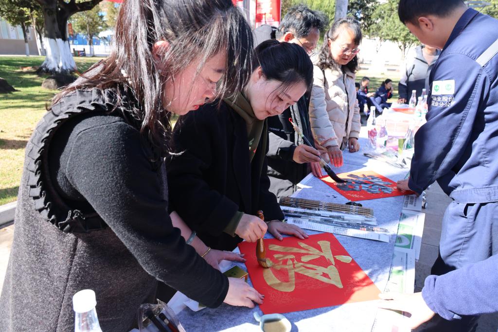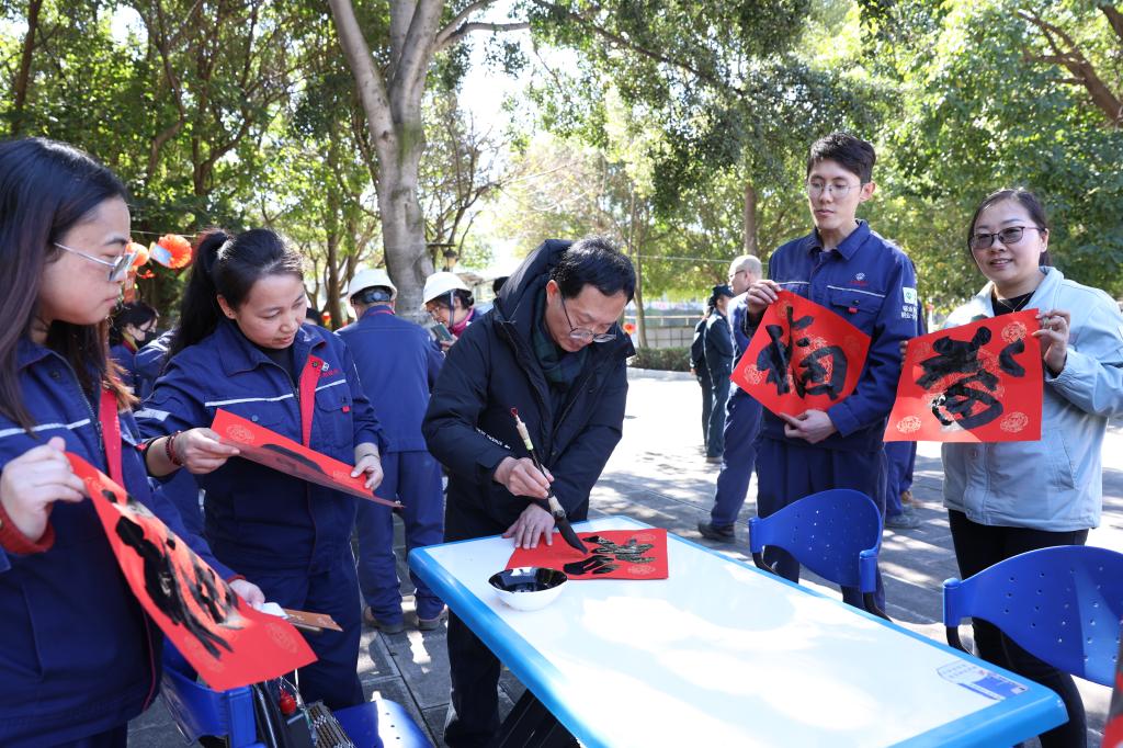 “張貼春聯(lián)和福字是中國(guó)人過(guò)年時(shí)的傳統(tǒng)習(xí)俗,感謝各位老師讓我們切身感受其中的內(nèi)涵和樂(lè)趣。”拿到作品的職工開(kāi)心地說(shuō)道。“新的一年,希望我們的工作如書(shū)藝般精進(jìn),生活似墨香般悠長(zhǎng)。”
