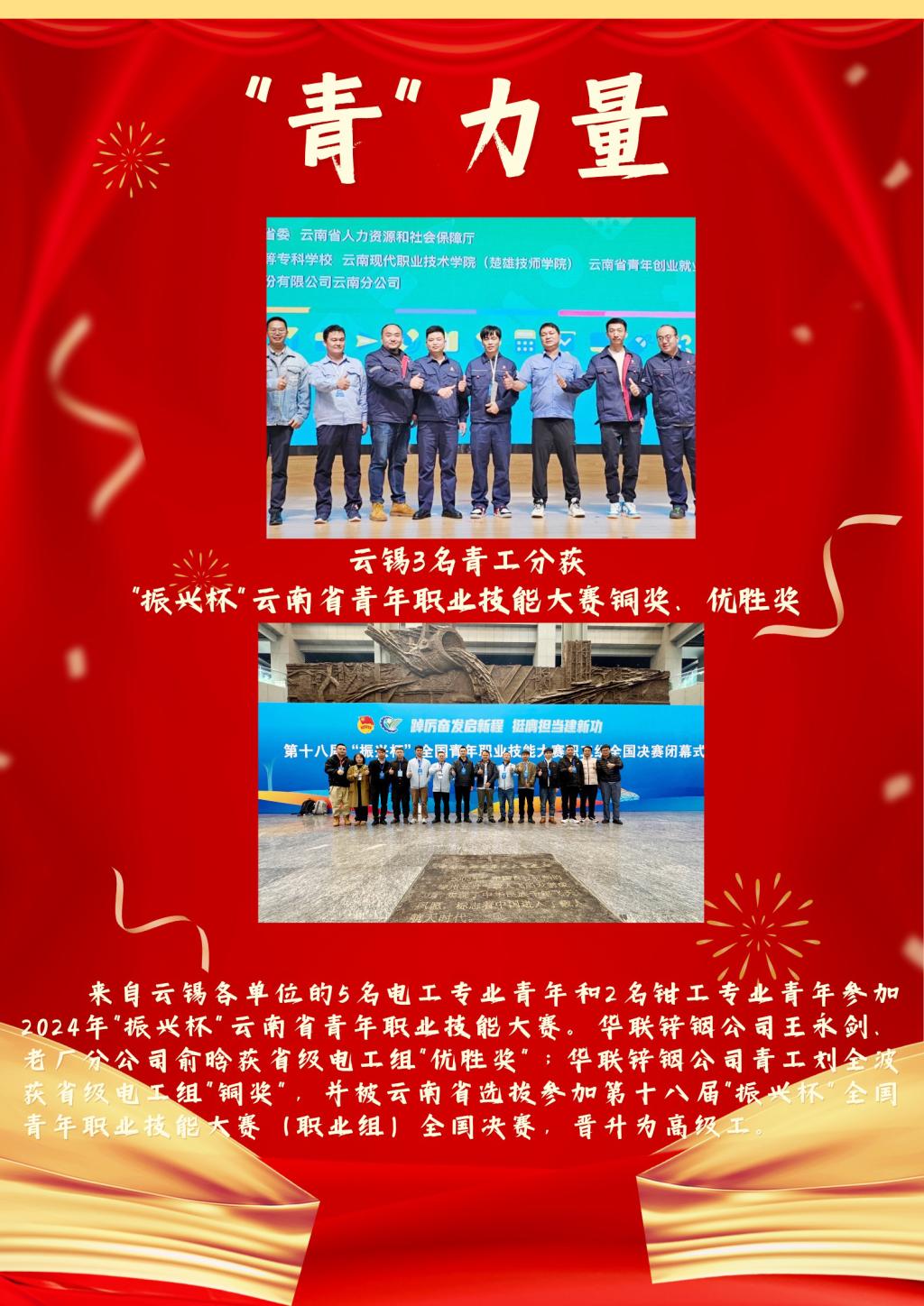 奮斗,是青春最亮麗的底色。習(xí)近平總書(shū)記強(qiáng)調(diào),新時(shí)代中國(guó)青年要勇于砥礪奮斗。在奮斗之路上,云錫青年有的在機(jī)器轟鳴的車(chē)間寫(xiě)下“安全標(biāo)桿”的注腳,以全國(guó)青年安全生產(chǎn)示范崗擦亮責(zé)任勛章;有的在高手云集的競(jìng)技場(chǎng)上脫穎而出,摘得獨(dú)屬青年的“振興杯”榮光;有的在“創(chuàng)青春”大賽上亮出創(chuàng)新成果,獲得引以為豪的“創(chuàng)新之星”;有的在公益路上默默奉獻(xiàn),當(dāng)好溫暖守護(hù)者……新征程上,廣大云錫青年在平凡崗位上建功立業(yè),共繪出彩青春!