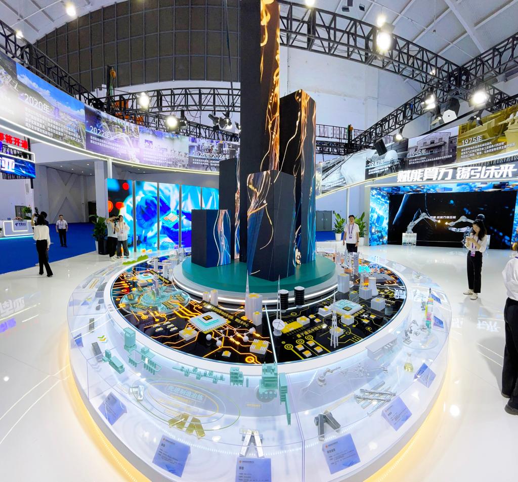 前沿科技應用——勾勒錫銦創新生態。在云錫展臺核心區域,“芯聯萬物”創新沙盤格外引人注目。沙盤以云南錫銦實驗室為中軸,通過芯片互聯電子通訊、智能制造、智慧生活、航天航空、智聯運輸5大應用板塊,并貫穿綠色智慧礦山、先進制造冶煉、專精特新深加工全產業鏈,全面呈現錫和銦作為算力金屬的顯著特征,更充分展示云錫錫銦推動創新鏈與產業鏈深度融合,圍繞打造國家錫銦產業技術創新高地及原創技術策源地、建設具有重要國際影響的全球錫銦技術中心的創新生態。