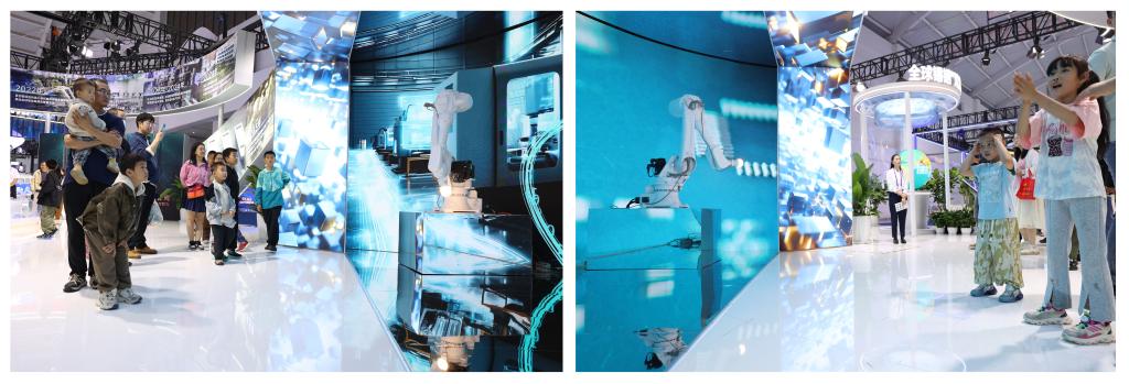 科技互動(dòng)嘆為觀止。作為云錫展臺(tái)的“實(shí)力擔(dān)當(dāng)”,XR算力探秘空間前總是排起長龍。伴隨著充滿節(jié)奏感的金屬音效,機(jī)械臂與視頻聯(lián)袂演繹從礦石到芯片的錫銦“智造”全流程,讓觀眾直呼“顛覆認(rèn)知”,紛紛感嘆:“原來手機(jī)里的每一個(gè)觸點(diǎn)都有錫的貢獻(xiàn)!”