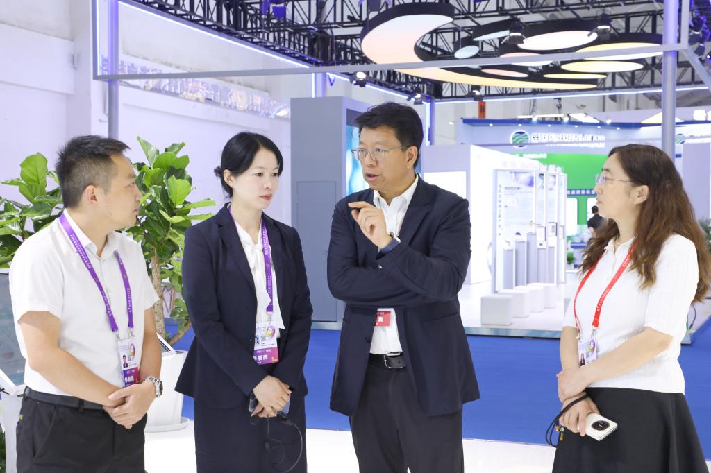 控股公司副總經(jīng)理李季,控股公司領(lǐng)導(dǎo)楊奕敏、外部董事周建國到云錫展臺(tái)觀展指導(dǎo)。