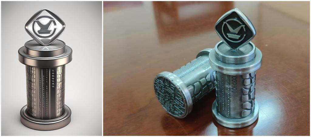 作品上端以云錫LOGO標(biāo)識(shí)為切入點(diǎn),其獨(dú)特造型極具辨識(shí)度。皮革紋理象征著基層部門工會(huì)的協(xié)同聯(lián)動(dòng),錫材雕刻凸顯云錫特色,豎排文字布局飽含傳統(tǒng)韻味,讓使用者與關(guān)注者都能直觀感受工會(huì)數(shù)智化建設(shè)的意義與方向。