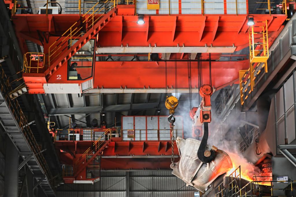 頂吹爐液體渣吊投進入煙化爐 彭鑫 攝