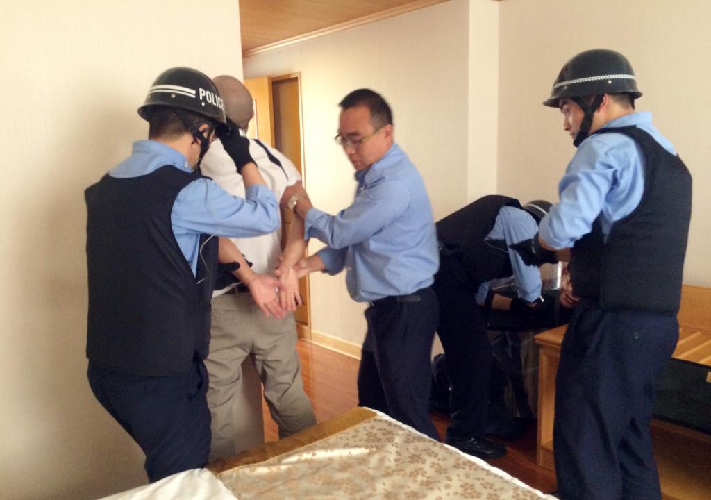 演練模擬兩名男子到云錫賓館總臺辦理入住手續,在辦理中,總臺服務員發現兩名男子藏有管制刀具,及時通報賓館保衛部。賓館保衛部人員接到通報,禮貌地向兩名嫌疑人表明身份,要求嫌疑人配合交出管制刀具;嫌疑人在溝通過程中不予配合,并抽出匕首進行口頭威脅。保衛部人員受到威脅后,沉著冷靜地對嫌疑人進行了合理控制,阻止嫌疑人離開,同時向110報警,對廣元公司保衛部說明情況,等待警方到場處理。