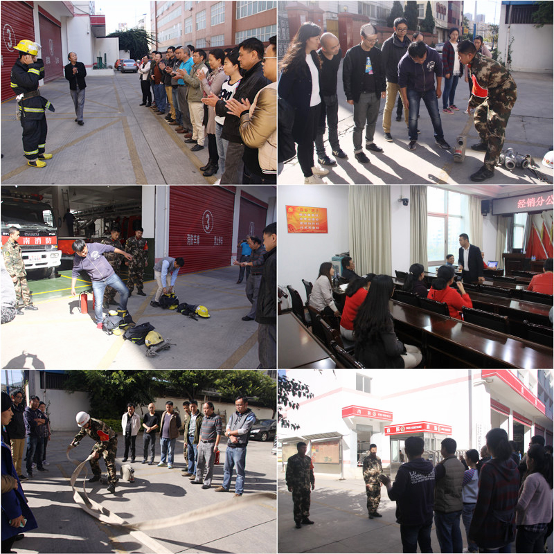 11月11日,經銷分公司總部邀請昆明市社安火災防治中心老師進行《昆明市2015年消防安全培訓提綱》培訓。培訓老師和員工圍坐在一起,以全國發生的典型火災事故為例,圖文并茂就火災的性質、種類、危害、預防、逃生與自救等消防安全知識進行了詳細講解。11月中旬,經銷分公司組織《消防法》知識答題活動,共40人參與答題,38人獲得滿分。11月23日,經銷分公司總部30余人到高新消防支隊開展消防趣味演練活動。活動由學習穿消防服、學習滅火器的使用方法、消防水管拋接以及如何對傷員施救四個部分組成,大家在寓教于樂中學習到了消防安全知識。