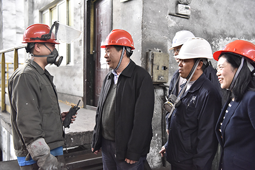 車間聲音大,張濤湊近當班職工親切慰問