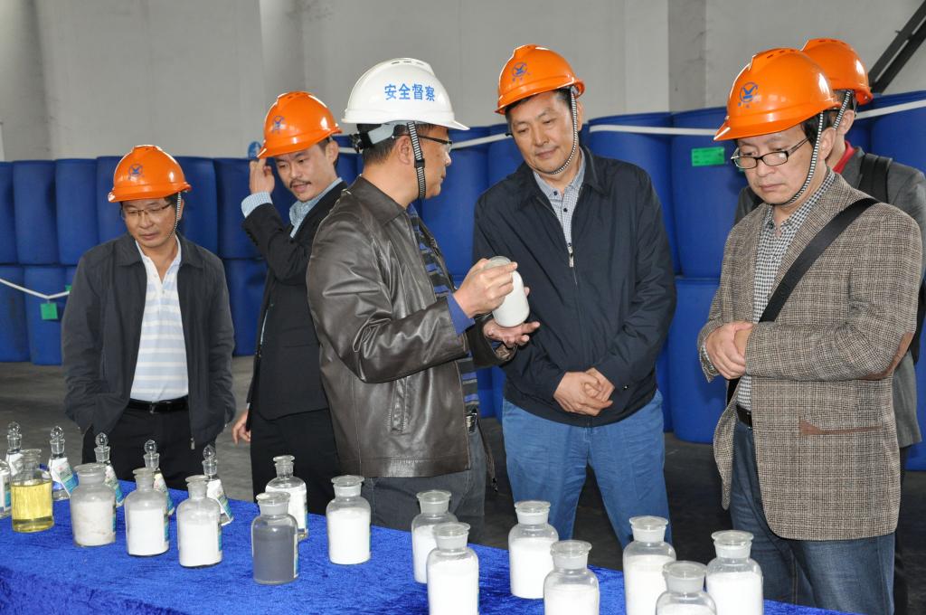 11月2日下午,深圳同方公司總經理蕭德華一行4人,在錫業股份副總經理劉路坷及相關人員陪同下,到錫化工參觀交流,分公司經理魏兵接待了客人。來賓一行參觀了錫化工甲基錫生產基地和硫酸亞錫生產基地,分公司經理魏兵向客人介紹了錫化工的發展歷程、生產工藝技術、產能規模、產品應用和發展前景等情況。雙方就感興趣的話題進行了探討交流。