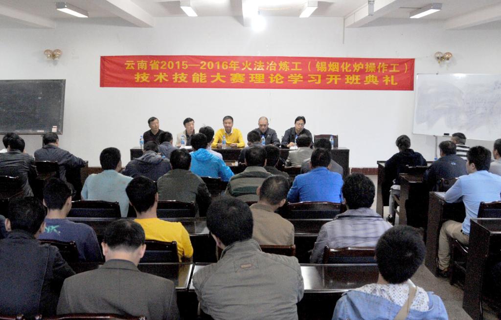 9月14日,云南省火法冶煉工(錫煙化爐操作工)技術(shù)技能大賽理論學(xué)習(xí)開班典禮在冶煉分公司舉行,控股公司工會副主席向鵬飛、控股公司工會生產(chǎn)保護(hù)部部長張邁進(jìn)、控股公司人力資源部培訓(xùn)科科長胡光輝,冶煉分公司黨委副書記、工會主席保映輝,副經(jīng)理?xiàng)畛闪郑己私M成員及參賽職工等,共計(jì)60多人參加開班典禮。