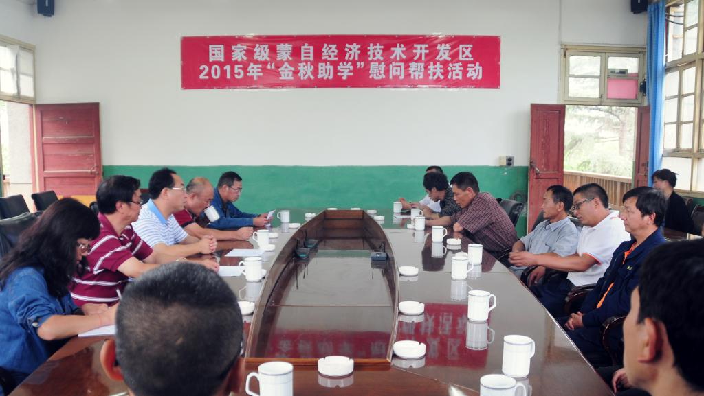 國家級蒙自經(jīng)濟(jì)技術(shù)開發(fā)區(qū)黨工委副書記、紀(jì)委書記何震海一行三人,把6000元助學(xué)金送到橄欖坡,親手把一個(gè)個(gè)信封交給六名困難員工。何震海說:“云錫是一個(gè)特大型企業(yè)集團(tuán),在蒙自經(jīng)開區(qū)內(nèi)的地位舉足輕重。今后將繼續(xù)加大對園區(qū)困難員工的幫扶力度。”