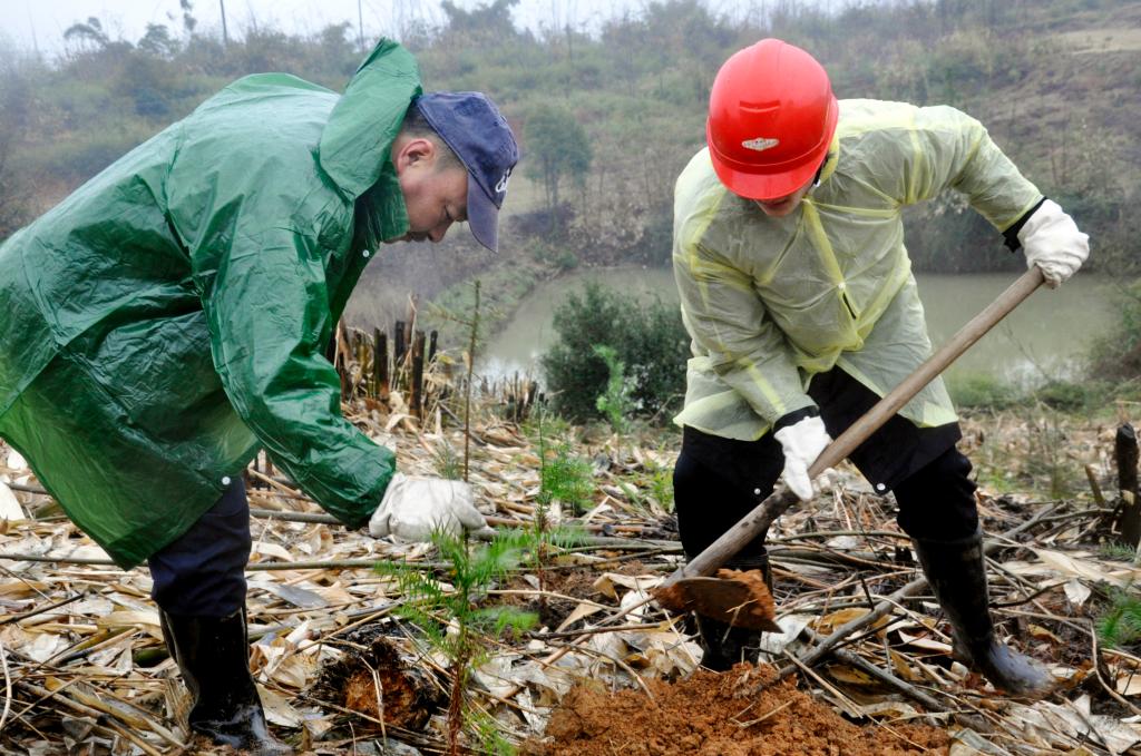 3月1日上午,云湘礦冶公司領(lǐng)導(dǎo)班子成員和機(jī)關(guān)、部分工段人員,以及新進(jìn)公司的大中專生等,120余人來到廠區(qū)南面圍墻外下渡村山坡,與下渡村村委的群眾一道植樹造林。經(jīng)過2個(gè)多小時(shí)的勞動(dòng),共種植7000多株沙樹苗。