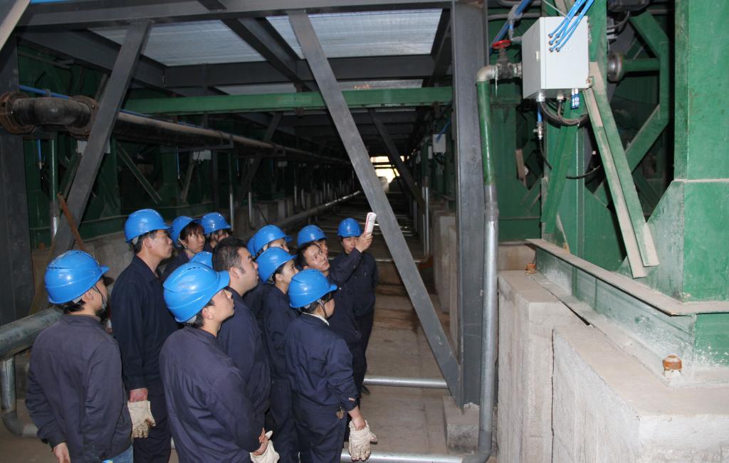理論培訓(xùn)結(jié)束后,在技術(shù)人員的帶領(lǐng)下,大家一同前往半自磨和Φ2m離心機(jī)生產(chǎn)現(xiàn)場(chǎng)就設(shè)備的構(gòu)造、規(guī)范操作等進(jìn)行了實(shí)際操作和學(xué)習(xí)。