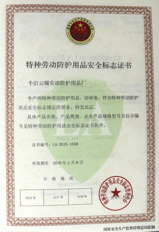 近期,云錫勞動防護(hù)用品廠取得國家《特種勞動防護(hù)用品安全標(biāo)志證書》,成為云南省特種勞動防護(hù)用品生產(chǎn)企業(yè)中屈指可數(shù)的獲證企業(yè)。