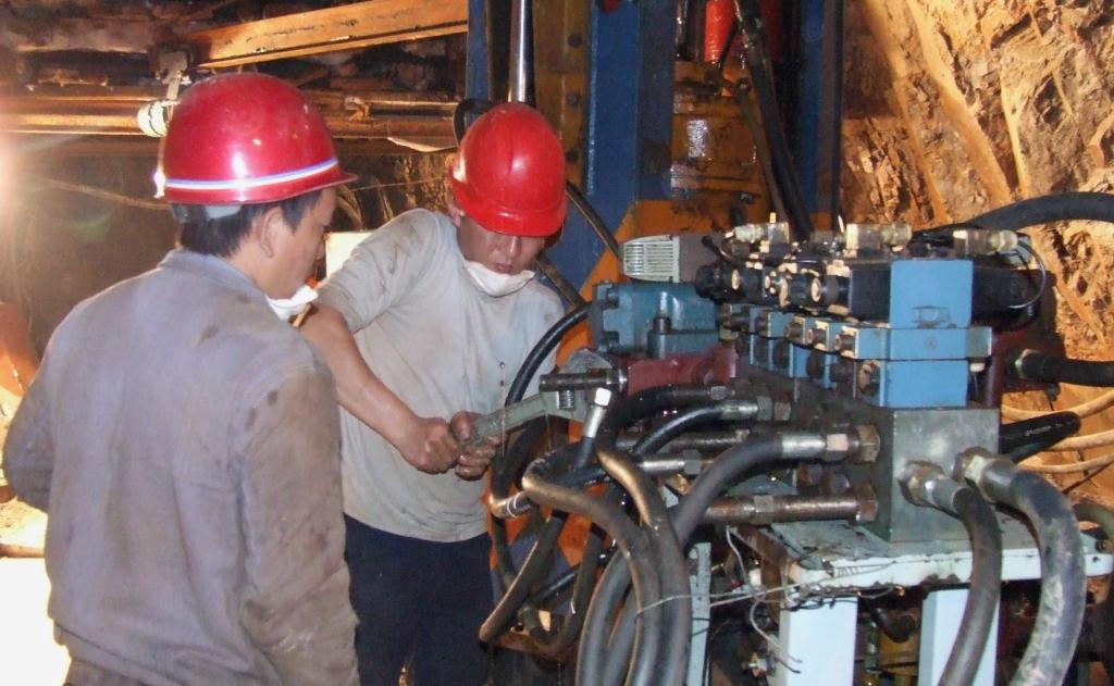 2012年12月,天井鉆機組在采選分公司塘子凹1800平臺打260米深的回風井。這是天井鉆機廠家的所有機型中打的最深的一口井。天井鉆的工人們熟練操作鉆機,推進深度,在一次次解決機械問題的過程中,逐漸學會了維修保養天井鉆機。實際工作時,他們比廠家技術人員更了解天井鉆機的技術故障,超出了之前運用預期。