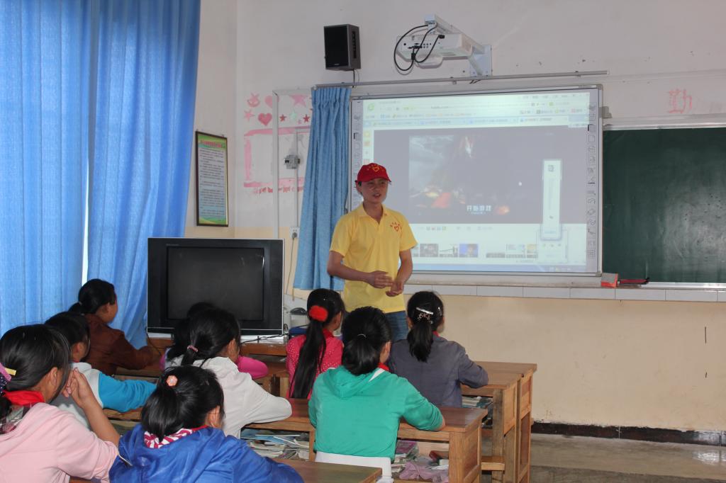 青年志愿者們以愛心輔導員的身份與同學們共同觀看了影片《念書的孩子》。觀看時,許多同學都被感動哭了,孩子們同電影的主人翁一樣也是農村的孩子,大多數家庭也像電影里面講述的那樣,父母出門在外打工,自己則作為留守兒童在農村和爺爺奶奶生活在一起。通過觀看影片,愛心輔導員圍繞該片與同學們進行觀后交流,并告訴同學們要努力像影片主人翁學習,做一個懂事、勇敢、堅強的好少年!