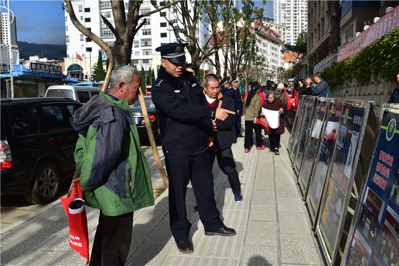 今年的法制宣傳主題是,大力弘揚(yáng)法治精神,協(xié)調(diào)推進(jìn)“四個(gè)全面”戰(zhàn)略布局。活動(dòng)現(xiàn)場(chǎng),工作人員通過(guò)設(shè)置36塊法制宣傳展板、播放法制電視宣傳片、發(fā)放宣傳資料、贈(zèng)送普法三字經(jīng)年歷和普法宣傳環(huán)保袋等多種形式,為廣大市民宣傳憲法精神、中國(guó)特色社會(huì)主義法律體系、國(guó)家基本法律及“七五”普法相關(guān)知識(shí),工作人員和民警耐心為過(guò)往市民講解法制知識(shí),解答市民咨詢的各種法制相關(guān)問(wèn)題。