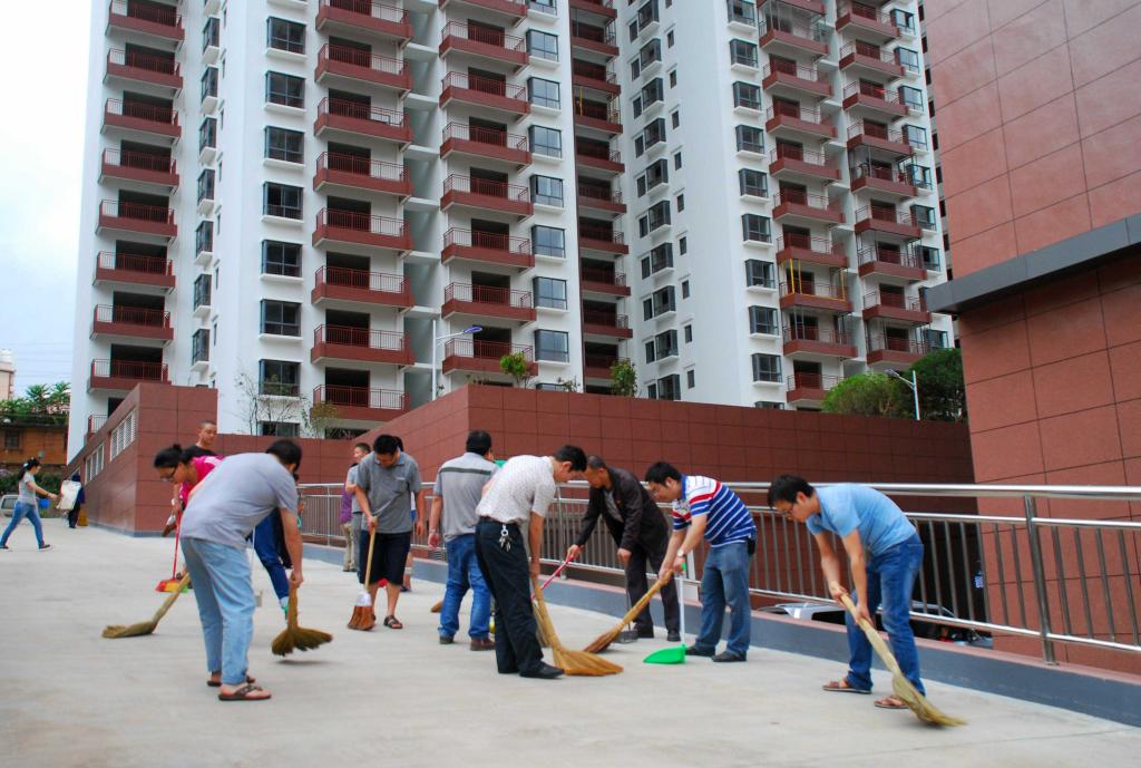 活動當天,天空時而下起紛紛小雨,時而烈日炎炎,黨員團員們爭先恐后,紛紛拿起清潔工具拾撿、清掃,認真清理金湖明珠小區內外環境衛生。經過兩個多小時的辛勤勞動,小區內花園、排水溝、道路及樓房墻壁等被一一清掃干凈,小區顯得更加整潔美觀,吸引了眾多客戶前來看房。勞動之余,大家還耐心地向前來看房的客戶介紹金湖明珠和水榭嘉園住房的優良品質及優雅宜人的居住環境。大家熱情周到的服務態度贏得了客戶的一致稱贊,有效促銷。