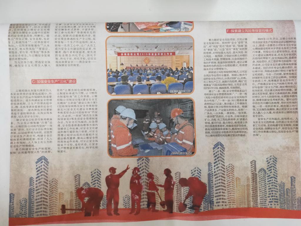 2019年11月27日,云錫公司在貫徹全國安全生產(chǎn)電視電話會議精神的會議上,就進(jìn)一步推進(jìn)公司安全文化專業(yè)化模塊建設(shè)和年末歲首安全各項(xiàng)工作進(jìn)行部署。控股公司主要領(lǐng)導(dǎo)指出,安全文化建設(shè)實(shí)施兩年來,在有關(guān)專家團(tuán)隊(duì)的指導(dǎo)和幫助下,安全風(fēng)險(xiǎn)識別,隱患排查、風(fēng)險(xiǎn)管控、員工塑培等方面取得一定本建成。但仍存在專業(yè)化模塊滯后形似神不似、風(fēng)險(xiǎn)動態(tài)辨識管控不夠等不足和差距。今后一個(gè)時(shí)期,要貫徹落實(shí)好國家有關(guān)安全工作會議精神。加強(qiáng)安全防范工作,統(tǒng)籌做好其他方面的工作。嚴(yán)格落實(shí)安全生產(chǎn)網(wǎng)格化管理,織好專業(yè)部門安全生產(chǎn)網(wǎng),做到橫向到邊,縱向到底,切實(shí)落實(shí)風(fēng)險(xiǎn)管控措施。要建立獎(jiǎng)懲制度,健全完善激勵(lì)機(jī)制,明確對單位、對個(gè)人階段性地、長期地考核內(nèi)容,探索創(chuàng)新安全考核機(jī)制。要對運(yùn)行中存在的問題歸類梳理,有針對性地糾偏,一項(xiàng)一項(xiàng)抓好落實(shí),既注重正向引導(dǎo),又實(shí)施負(fù)面激勵(lì),真正把安全文化理念入腦入心入魂,形成具有云錫特色的安全文化。