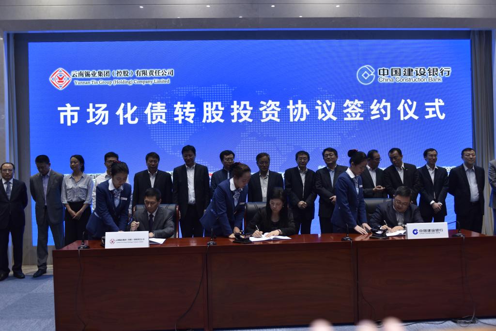 2016年10月16日,中國建設銀行股份有限公司與云南錫業集團(控股)有限責任公司嚴格按照市場化、法制化的原則,雙方經過友好協商,在自愿、平等和誠信的基礎上,在京簽署總額近50億元的市場化債轉股投資協議,建行云南省分行、云錫集團還簽署了全面戰略合作協議,這是雙方落實總額100億元全面降低云錫控股杠桿率框架協議邁出的實質性步伐,標志著全國首單地方國企市場化債轉股項目成功落地。